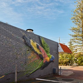 Ian Mutch is an Australian artist exploring beauty through nature, characters and details. Abstract brushstrokes and layered backgrounds are detailed with entertaining whimsical illustrations of characters, trees, birds, animals, colliding universes and patterns.